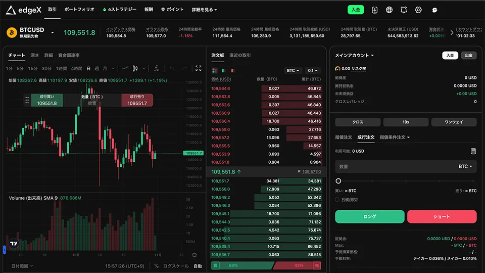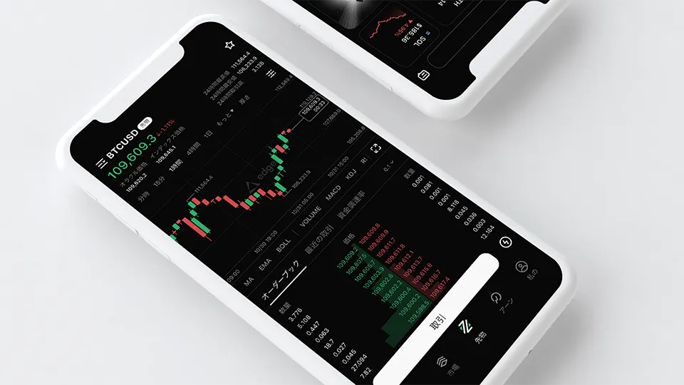 edgeXは、Webサイトや取引画面が完全に日本語に対応しているだけでなく、直感的に操作できる洗練されたUI/UXを追求しています。さらに、iOSとAndroid両方対応の公式モバイルアプリをリリースしており、外出先でもPCと変わらない環境で取引が可能です。