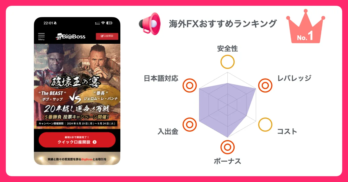 | 10位 | ![]() 詳細を読む | 無制限レバレッジとロスカット0%が特徴。 ハイリスク・ハイリターンな取引が可能。 | 口座開設へ |
