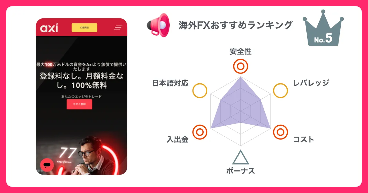 | 6位 | ![]() 詳細を読む | 最大5,000倍レバレッジと仮想通貨取引が充実。 ボーナスやトレード大会が充実。 | 口座開設へ |